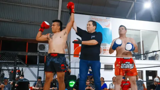 Con intensos y golpes y constantes patadas al cuerpo y a la cabeza, el 'Halcón' dejó sin respuesta a su rival, por lo que el réferi decidió parar el combate, momento que desató el alarido de los aficionados que abarrotaron el gimnasio.