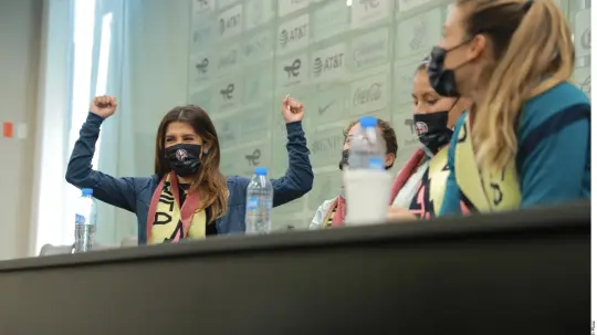 Mientras las futbolistas contaban sus andanzas, en la sala de conferencias de las instalaciones del Club América apareció, para sorpresa de todos, Jennifer Muñoz.