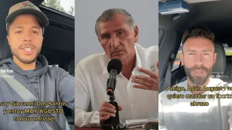 "Secretario Adán ¿cómo está? Soy Giovani dos Santos y estoy 'Muy Agusto' con su amistad, le mando un fuerte abrazo", dice en su intervención el ex jugador del Club América.