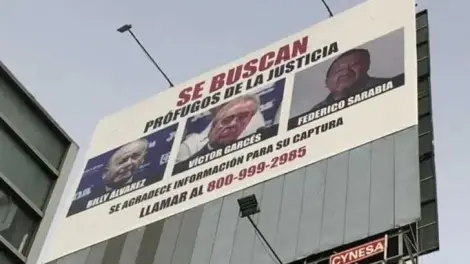 Se buscan, prófugos de la justicia", es el texto de un espectacular en el que aparecen tres personajes que alguna vez estuvieron relacionados con la cooperativa y el club deportivo Cruz Azul.