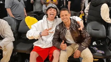 El que brilló ayer lunes en la duela del Crypto.com Arena fue la leyenda LeBron James, pero muy cerca, en la primera fila, también hubo dos figuras que robaron reflectores. Se trata del cantante Peso Pluma y el futbolista Javier "Chicharito" Hernández.