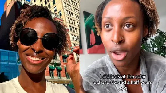 La influencer sufrió un daño irreversible en la córnea luego de ver un eclipse sin protección.