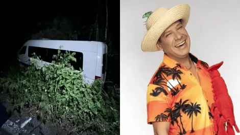 La unidad era conducida por el chofer del comediante quien perdió el control del vehículo en una curva, lo que propició que se volcara. Los tres ocupantes resultaron lesionados.