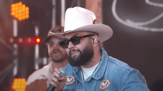 En esta ocasión, el intérprete de Primera Cita, vestido con una chaqueta de mezclilla y flecos, pantalón de mezclilla, sombrero y botas cafés, no se presentó solo, pues compartió el escenario con el reconocido cantante estadounidense Leon Bridges, con quien recientemente lanzó una colaboración.