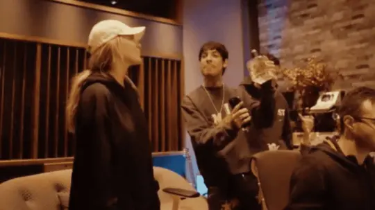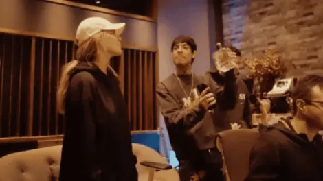 Por medio de un videoclip, se ve a la interprete de 'Sapito' en el estudio de grabación con el sonorense, donde ponen los detalles finales a esta canción que muchos internautas calificaron como 'un corrido coquette'.