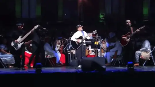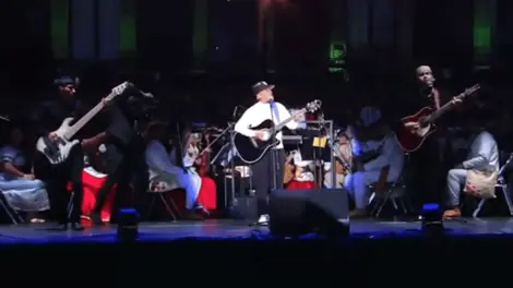 Solo una canción duró su presentación para dar paso nuevamente al ensamble de semilleros juveniles que continuaron haciendo un repaso cultural de distintos estados de la República. La breve presentación no se supo si se debió a la exigencia del público en el Zócalo para que el grupo se fuera, si estuvo planeado desde un principio, o si la lluvia fue un factor que adelantó la presentación.