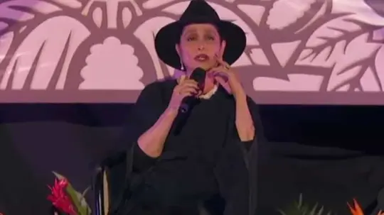 Detrás del escenario, la intérprete de "Celos" hizo un chiflido que dejó zumbando los oídos de varios de los asistentes.