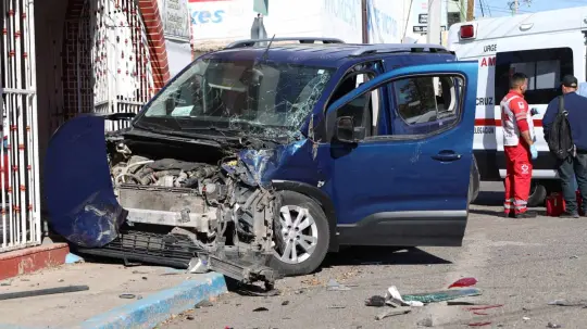 Un accidente en la colonia Centro de Hermosillo involucró un camión urbano, una van Peugeot y tres vehículos estacionados, dejando 12 lesionados, uno grave.