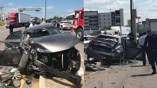 Se presume que el vehículo fue impactado por alcance por el camión, lo cual hizo que cruzara la guarnición, ambos circulaban de oriente a poniente. Al ser impactado el vehículo quedó al otro lado de la vialidad, el cual fue impactado por un vehículo de carga.