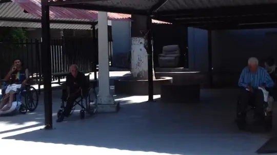 La asistente de dirección, dijo que tratan de mantener a los viejitos y pacientes lo más cómodo posible, en lo fresco y bien hidratados, para que puedan estar a gusto y descansar.