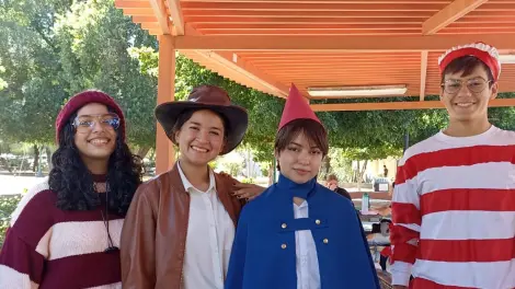 De igual forma, se observó a un grupo de alegres alumnos de Arquitectura disfrazados de Waldos, duendes y fantasmas reunidos en los esplendorosos jardines del campus disfrutando de un día llena de colorido y buen ambiente.
