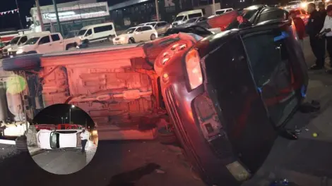 Accidente termina en dos vehículos volcados en colonia Las Lomas y Perisur