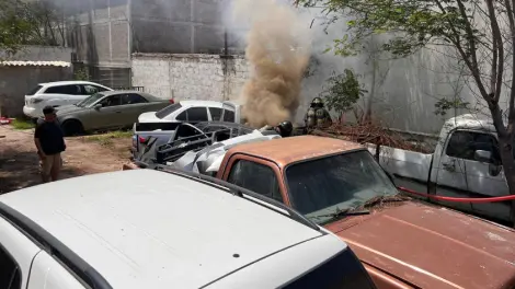Dos autos se incendian dentro de taller mecánico en la colonia San Benito