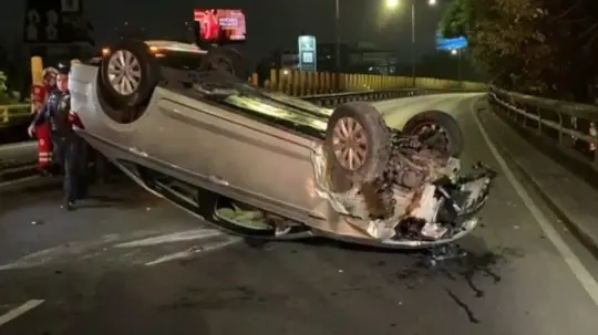 Hasta el momento, se desconocen las causas por la que se presentó el incidente que concluyó en la volcadura de un sedán, de color negro.