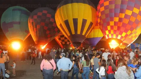 El escenario en esta noche fue la explanada de la ExpoGan, donde los asistentes presenciaron la demostración del vuelo anclado de 20 globos aerostáticos.