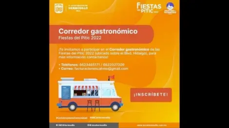 “Hay varias formas de participar en las Fiestas del Pitic, primeramente el Corredor Gastronómico es el área que se encuentra para restaurantes, hay 40 espacios que están disponibles y se colocan sobre el bulevar Hidalgo, se cierran las calles para que se puedan llevar a cabo las Fiestas y que el paso sea peatonal.“El otro esquema de participación es para los vendedores ambulantes, vendedores de artesanías, puestos de otro tipo colocados en carpas, sobre el camellón en la Plaza Hidalgo, esos se puedan apartar directamente con Inspección y Vigilancia y forman parte de Fiestas del Pitic”, explicó.