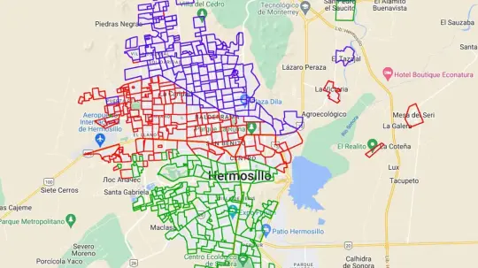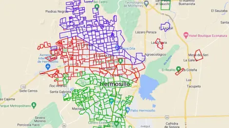 El día lunes el sector donde se presta el servicio, abarca desde la colonia La Caridad al norte de Hermosillo, hasta la colonia centro y desde el poniente la zona que abarca el aeropuerto hasta Los Naranjos y las Amapolas al oriente de la ciudad.
