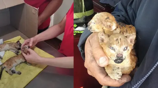 Rescatan de incendio a cachorros de puma; heridos de consideración