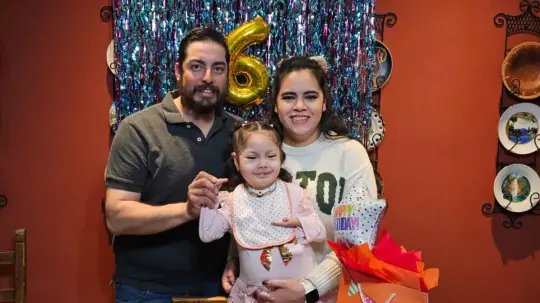 La niña padece síndrome de lesión en cromosoma cuatro y triplicación en el cromosoma ocho, esto le ha ocasionado algunas complicaciones en su desarrollo como paladar hendido y malformaciones en mandíbula y manos
