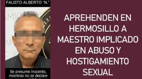 La Fiscalía General de Justicia del Estado de Sonora (FGJE), informó a través de sus redes sociales la detención de Fausto Alberto "N", de 48 años de edad, maestro de una escuela secundaria de Hermosillo, señalado de abuso y hostigamiento sexual.