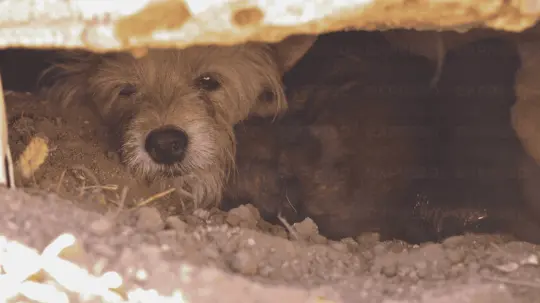 Perrita en situación de calle da a luz en una tumba del panteón Yáñez