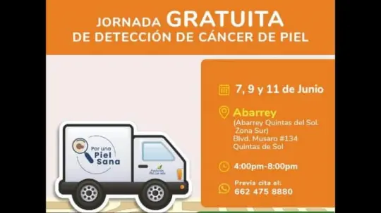 HERMOSILLO, SON.- Con el objetivo de prevenir el cáncer de piel de manera oportuna, la fundación “Piel con vida” ofrece consultas móviles gratuitas cada semana en diferentes puntos de la ciudad capital.