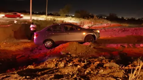 HERMOSILLO, SON.- Un vehículo salió disparado del camino, luego de que perdiera el control en al transitar por una curva, a lo cual no pudo frenar lo suficiente quedando fuera del asfalto.