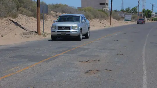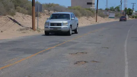 La proliferación de baches sobre la calle Mar de Cortés, principal vía de Bahía de Kino, ha convertido en una travesía el recorrido desde la entrada a la hermosa playa hasta el reconocido Museo de los Seris.