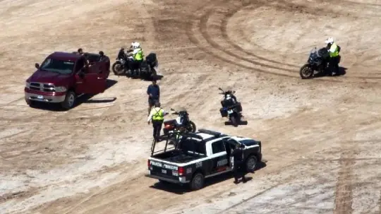 Este fue localizado gracias al Grupo Escua-Dron de la Policía Municipal gracias al apoyo de drones que lo lograron detectar un vehículo pick up que realizaba piruetas en la arena.