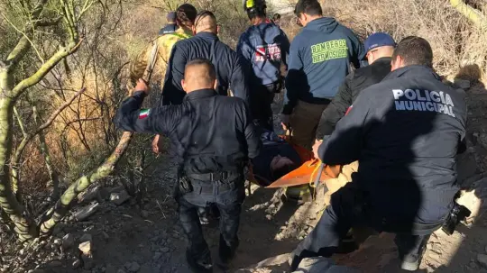 Elementos del Departamento de Bomberos y de la Policía Municipal rescataron a una mujer que sufrió una fractura de tobillo al descender del Cerro del Bachoco. La víctima fue atendida por los bomberos de la estación número dos después de tropezar con una piedra y caer varios metros.