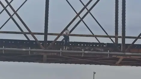 Rescatan a hombre del puente del vertedor de la presa