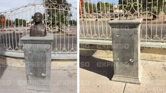Hace tres semanas se robaron una placa conmemorativa hecha de bronce y ayer sábado el busto del presbítero Jaime Salcido, el cual estaba en un pedestal de concreto a un costado de la iglesia y por dentro del cerco perimetral.
