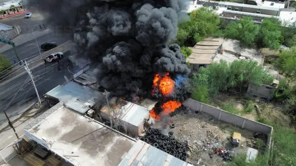 Un fuerte incendio se registró la tarde de este martes en una llantera ubicada en los bulevares Clouthier y Labradores, al sur de la ciudad de Hermosillo.