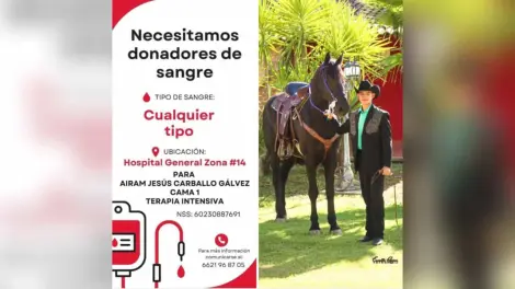 Si deseas ayudar a Airam Jesús Carballo Gálvez donando sangre, comunícate al número 6621 9687 05.