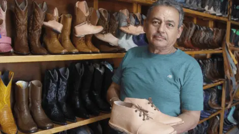 David Cuauhtémoc Olivares Abril tiene alrededor de 42 años dedicándose a esta actividad, trabaja con destreza la piel y la baqueta. Comentó que el establecimiento es negocio familiar que data desde la década de 1920.