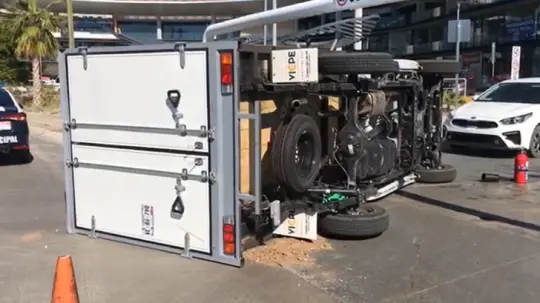 VIDEO | Se vuelca un vehículo de carga al poniente de Hermosillo