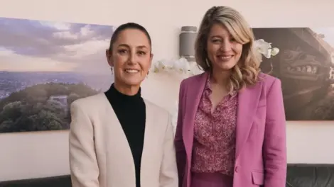 Claudia Sheinbaum Pardo compartió una foto junto a la canciller de Canadá en su cuenta de X, informando que hablaron de la relación entre México y Canadá, así como de la importancia del T-MEC.