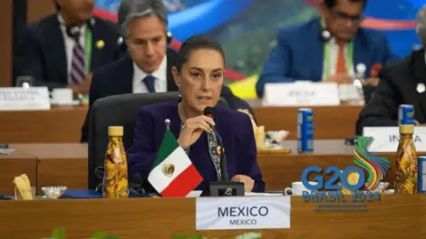 La Presidenta de México añadió que pertenece a una generación que luchó contra la represión, el autoritarismo, por la justicia social y la democracia, y que proviene de un "grandioso pueblo que decidió fundar por la vía pacífica, una nueva historia", por lo que reiteró su propuesta ante los miembros del G20.