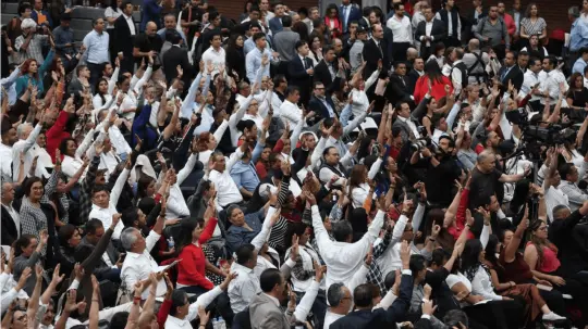 "Al terminar su cargo, las magistradas y magistrados, jueces y juezas, no pierdan el derecho, como lo dicta el artículo 101, de trabajar en los dos años siguientes, y que fuera de su circunscripción puedan trabajar en donde sea, del territorio nacional, para que no pierdan el derecho de ejercer su profesión y, con su experiencia, sigan enriqueciendo el área del derecho de nuestro país", expuso el diputado Jesús Cuanalo.