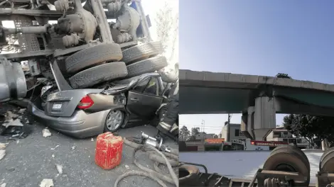 Cae tráiler de un puente y aplasta vehículos; hay heridos de gravedad