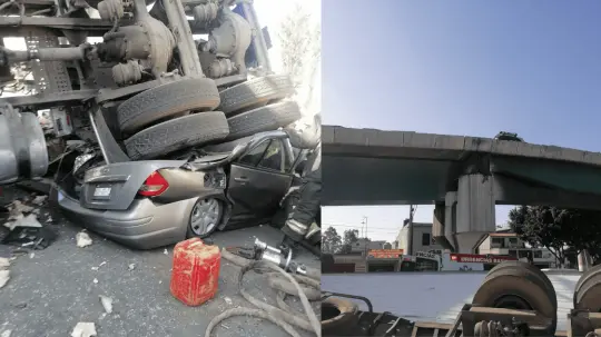 El accidente tuvo lugar la tarde del sábado, en la zona conocida como Lomas de los Guanos, próxima al Conjunto Industrial Cuautitlán. De acuerdo con las autoridades, el tráiler perdió el control y volcó desde el puente, impactando y aplastando al menos tres automóviles que circulaban debajo de él.