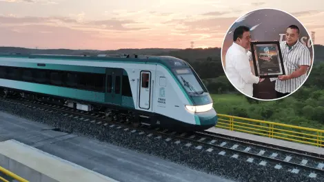 El director del Tren Maya, Oscar David Lozano, entregó un reconocimiento a Wilbert Tomás Barbosa López de 70 años por ser el pasajero un millón del Tren Maya, quien el 7 abril compró su boleto.
