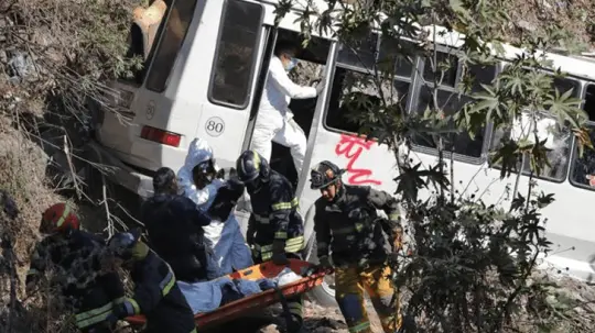 La Coordinación General de Protección Civil y Gestión Integral del Riesgo informó que, mediante el C5 del Estado de México, a través de la línea de emergencias 9-1-1, se reportó un percance vial entre dos vehículos particulares y un camión de pasajeros, donde quedó un vehículo sobre la carretera y los otros dos cayeron hacia el barranco, resultando el fallecimiento de tres personas y 35 lesionados, de los cuales se trasladaron a 15 para recibir atención médica.
