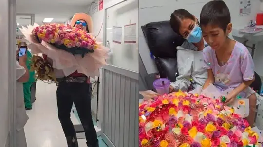 Aunado a ello, dedicó unas emotivas palabras para la niña, quien es "muy valiente". "'El Patrón' le mandó este detallito, señorita. Pues quiere hacerle saber que está orgulloso de usted, señorita, porque él sabe que usted es una mujer muy fuerte, señorita. Una señorita muy caliente", dijo el tiktoker, llevando consigo un gran ramo de rosas.