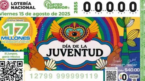 El Sorteo Superior 2855 de la Lotería Nacional, celebrado el 15 de agosto de 2025 en el marco del Día de la Juventud, entregó un premio mayor de 17 millones de pesos al número 05821, distribuido en Ciudad de México y venta electrónica.