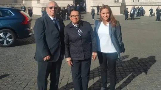 La Secretaria de Gobernación, Rosa Icela Rodríguez, acudió en representación de la presidenta Claudia Sheinbaum al funeral del Papa Francisco en la Plaza de San Pedro, acompañada de Clara Luz Flores y el embajador Alberto Barranco.
