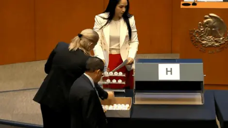 Dos tómbolas negras y cientos de esferas blancas, de las cuales por lo menos dos se cayeron, así como disculpas por parte del presidente de la Mesa Directiva del Senado, Gerardo Fernández Noroña, marcaron esta sesión, que fue calificada por el morenista como "solemne, inédita e histórica" en el marco de la reforma al Poder Judicial.
