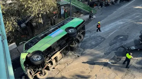 VIDEO | Volcadura de camión de pasajeros deja 8 lesionados