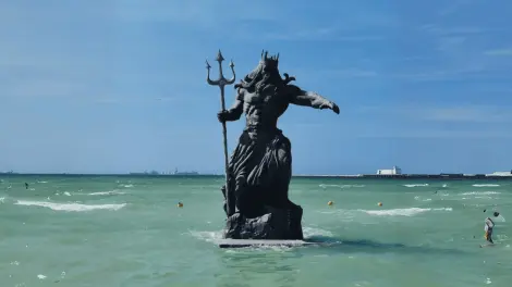 La estatua de Poseidón en Puerto Progreso, Yucatán, que causó polémica recientemente ante las fuertes lluvias e inundaciones, será clausurada por la Procuraduría Federal de Protección al Ambiente.