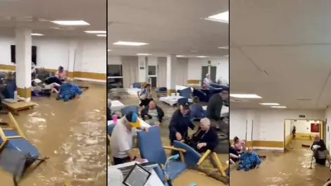 Una de las escenas más impactantes se registró en una residencia de ancianos en Paiporta, Valencia, cuando una tromba de agua irrumpió en el lugar durante la noche del martes.